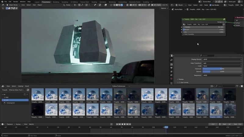 ”High quality HDRIs, clear thumbnails and drag and drop from Asset browser. Options for emission value, horizon, z-Rotation and colormanipulation in shader browser, easy to use.”