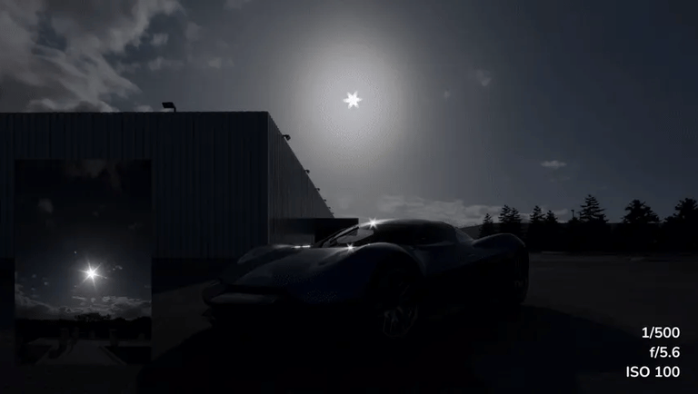 This ensures a realistic lighting condition, and you will need to adjust the shutter speed of the camera (or EVs) just as you would need to do in the real world.