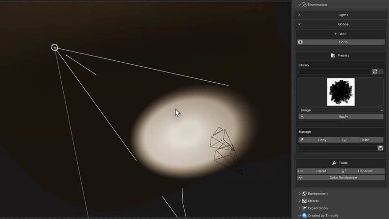 Reuse the lights you made in other projects by exporting them as presets. Also, with just a minimal setup, you can add other sellers’ gobos, or light packs to integrate them with our addon.