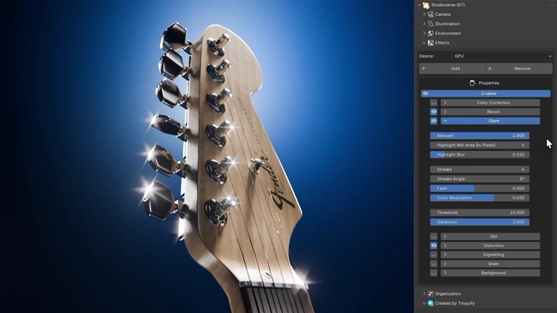 I was able to generate these 3 great light sources, the studio environment AND the lens effects in Blender with their add-on! There is still a lot more for me to use/explore in their software, including their other add-on “Proterials” which I believe adds a keyshot-like materials library to Blender.